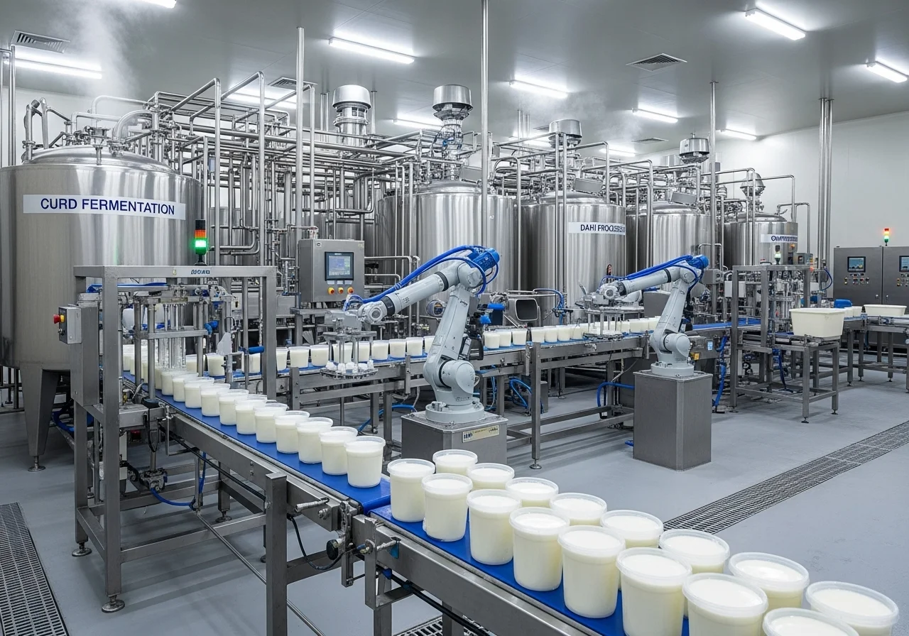 End-to-end automated setup for curd and dahi production, including milk standardization, incubation, fermentation, and packaging — delivering uniform texture, superior taste, and long shelf life.